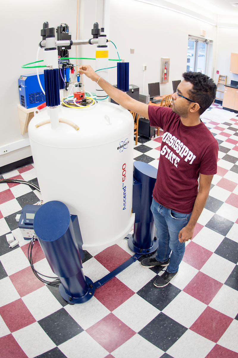The Mississippi State University NMR Center houses Bruker AVANCE III 300 MHz, Bruker AVANCE III HD 500 MHz, Bruker AVANCE III 600 MHz, a Bruker Neo 800 MHz NMR, and a Bruker EMX-10 EPR Spectrometer. This core magnetic research facility supports the department's faculty and student research efforts. As the most advanced NMR facility in the region, our service center is also committed to supporting on-campus, statewide, and regional researchers using NMR in their projects.